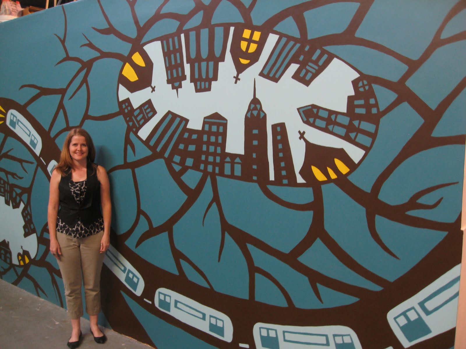 Sarah in front of the mural