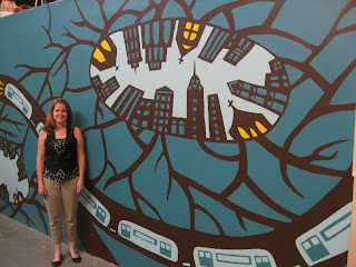 We are at the end of our second week here in NYC with the arts project. We have a great bunch of students. We are finished with painting the mural that Sarah designed (see the pic), and the students are deep into the creation of the art for the show in a week