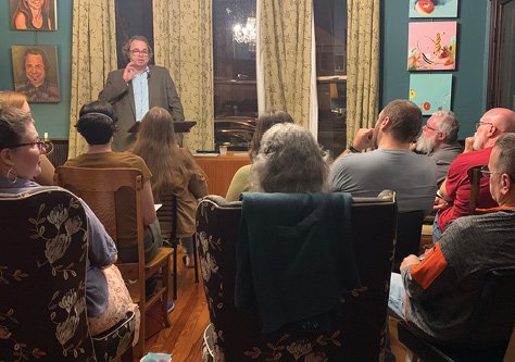 A year in pictures.  A recent visit with good friends in NY, harvesting turnips from our garden, hosting a Curator’s Codex—seminar series—in our dining room, at the SC State Capital building for Art Advocacy Day, painting the large triptych works for my Artifacts Series, working on Art Party signage—the Art Festival that we organize each year—this is our 10th year doing that!, Delivering a sermon at our church (in the midst of a stage set being used by a local theater group)